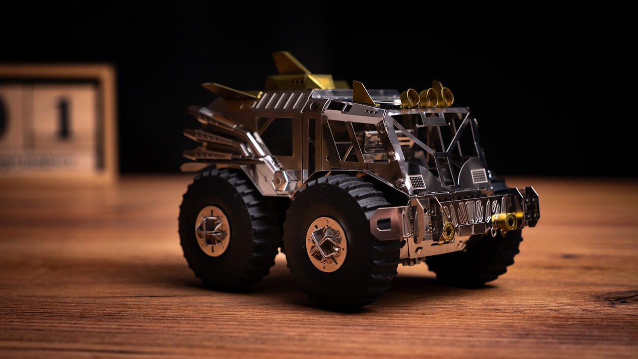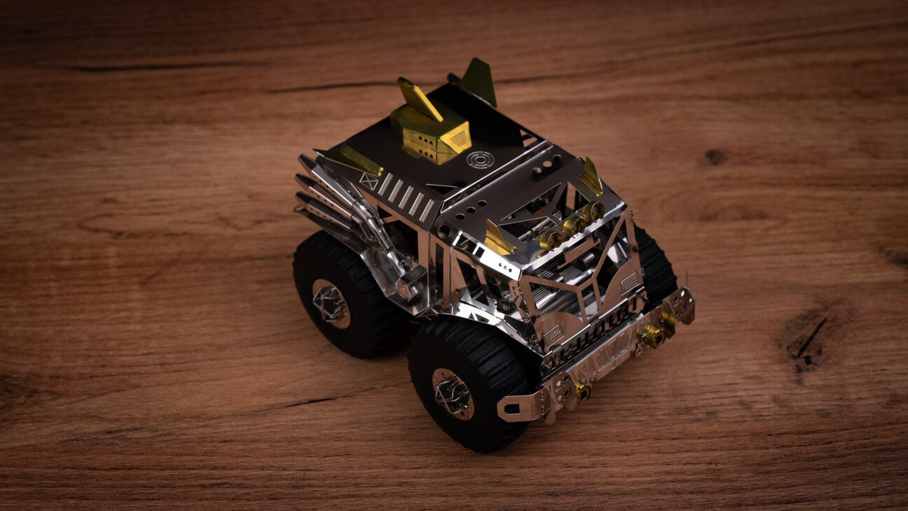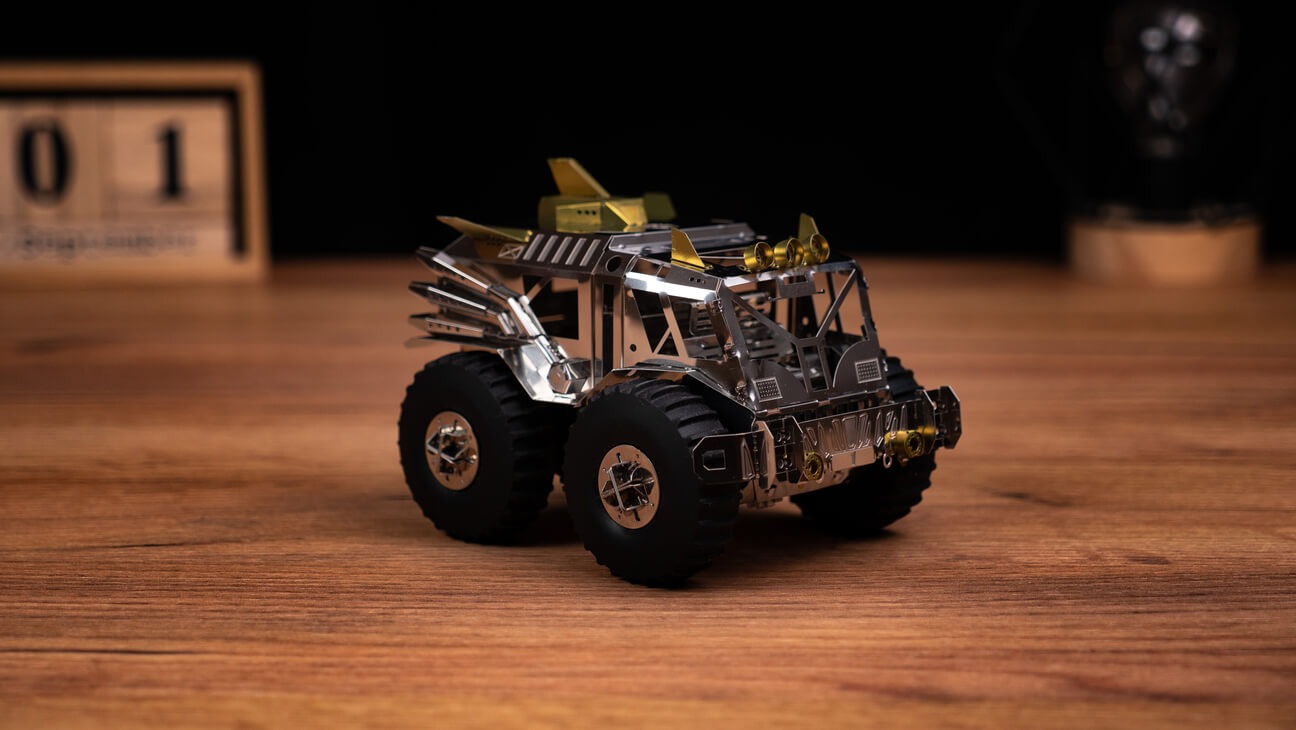 Οι σχεδιαστές της "Metal Time" πήραν το ουκρανικό όχημα παντός εδάφους "SHERP" με τροχούς εξαιρετικά χαμηλής πίεσης ως βάση για το συναρμολογούμενο μοντέλο "Trophy Hunter". Τέτοιες μηχανές εργάζονται εδώ και καιρό σε απομακρυσμένες περιοχές του πλανήτη. Αλλά οι δημιουργοί δεν μπορούσαν να αντισταθούν στον πειρασμό να δώσουν στο μοντέλο φουτουριστικά χαρακτηριστικά, χάρη στα οποία έγινε σαν χαρακτήρας σε ταινία επιστημονικής φαντασίας για την κατάκτηση άλλων πλανητών. Οι λάτρεις της διαστημικής όπερας θα το λατρέψουν.