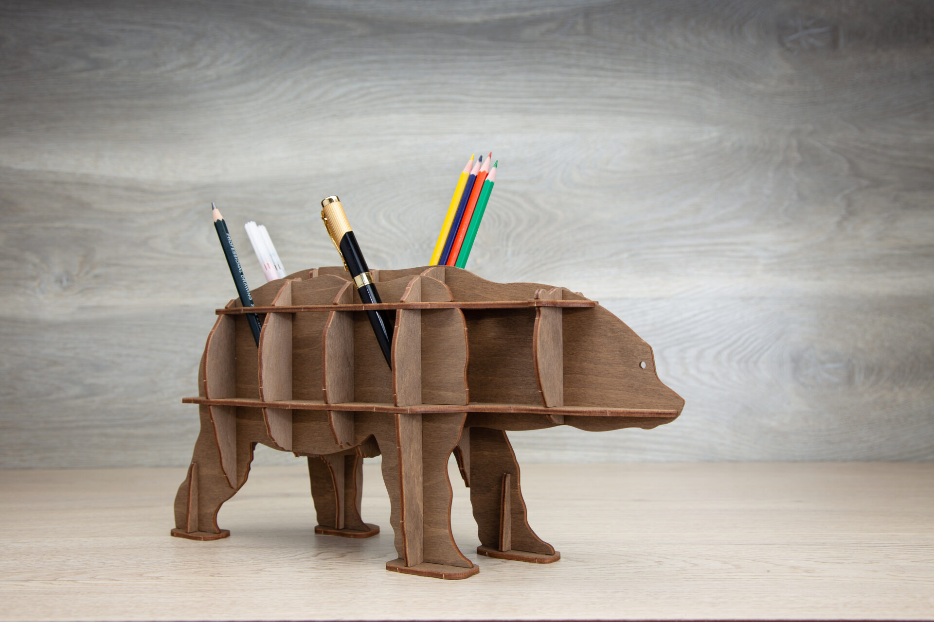Κιτ κατασκευής ενός organiser γραφείου σε μορφή αρκούδας. Ένα υπέροχο μοντέλο, ένα εξαιρετικό δώρο και μοναδικό αντικείμενο για να βάλετε τάξη στο χώρο εργασίας σας στο σπίτι και στο γραφείο.