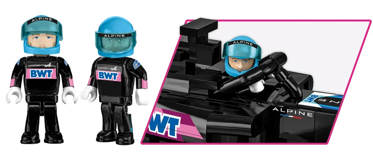 Το σετ περιλαμβάνει μια φιγούρα οδηγού με πλήρη στολή της ομάδας Alpine F1, η οποία θα προσθέσει ακόμη μεγαλύτερο ρεαλισμό στο μοντέλο σας. Νιώστε σαν μέλος της ομάδας, τοποθετήστε τον οδηγό στο αγωνιστικό αυτοκίνητο και προετοιμάστε τη μηχανή για τον αγώνα!
