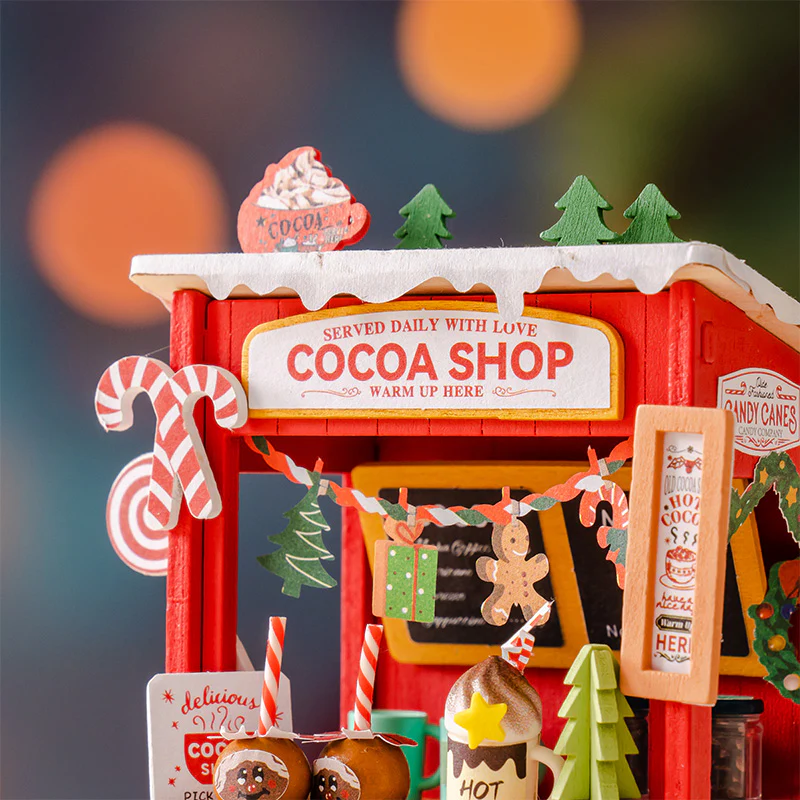 Οι διακοπές είναι ζεστές και γλυκές στο Cocoa Shop. Αυτό το DIY σπιτάκι μινιατούρα από την Rolife είναι ένα όμορφο και περίπλοκο διόραμα ενός πάγκου με ζεστό κακάο που ανυπομονεί να διώξει το κρύο μιας χιονισμένης ημέρας.