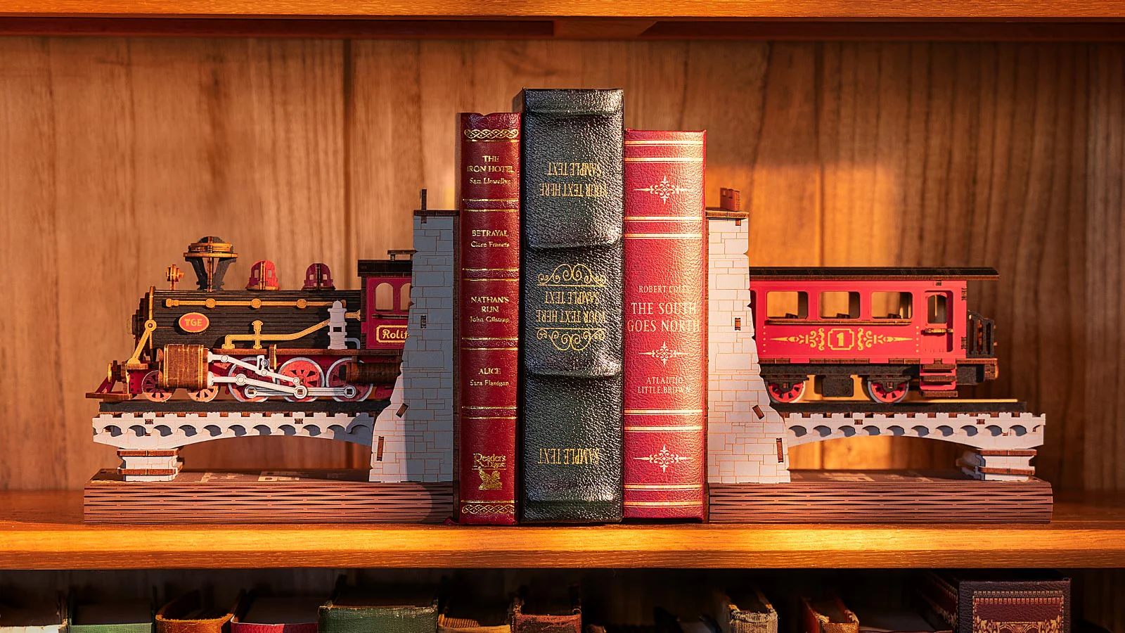 Το Time Travel είναι ένα DIY 3D ξύλινο παζλ - Βιβλιοστάτης, για την βιβλιοθήκη σας. Μετά την ολοκλήρωση αυτού του έργου, θα δείχνει ένα σιδηροδρο..
