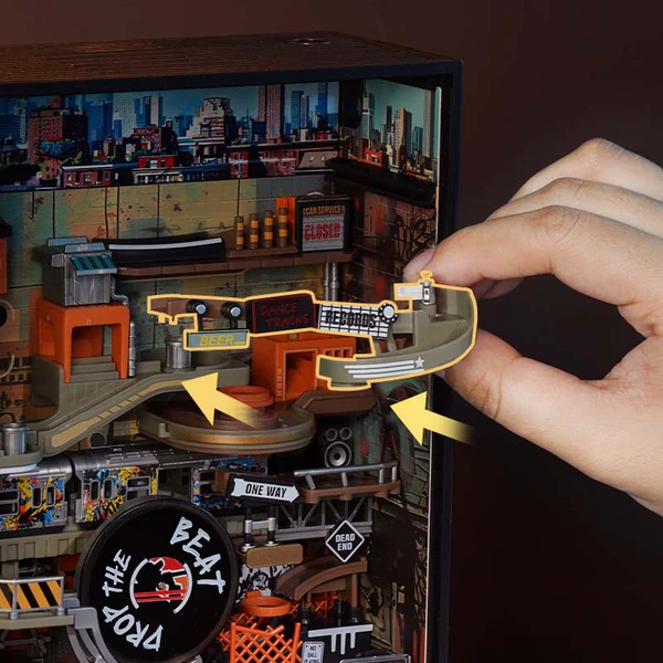 Το marble run Hip-Hop Street της ROKR, θα σας κάνει να αναπολήσετε εκείνες τις μέρες με την παρέα σας, όταν το breakdance, τα sneakers, τα πολύχρωμα γκράφιτι και οι δυνατοί ρυθμοί ήταν στην μόδα. Αυτό το marble run είναι σχεδιασμένο έτσι ώστε να αντικατοπτρίζει τη ζωή του δρόμου.