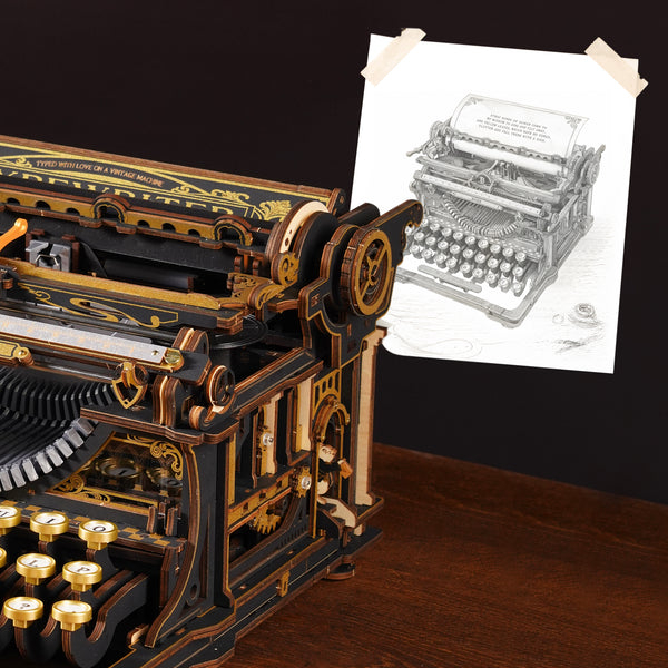 Η ρετρό χρωματική παλέτα του προσθέτει μια κλασική πινελιά, που θυμίζει τη ρομαντική ατμόσφαιρα των μηχανικών μηχανών και τη διαχρονική κομψότητα. Το μοντέλο προσφέρει μια συναρπαστική εμπειρία κατασκευής με κινούμενα μέρη που προσομοιώνουν πραγματικές κινήσεις πληκτρολόγησης.
