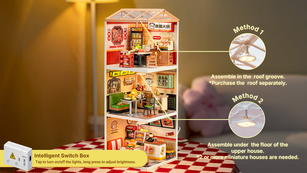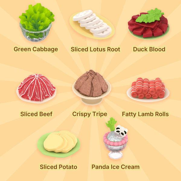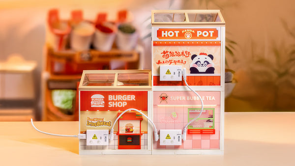 Το Rolife Panda Hot Pot είναι έτοιμο να σας προσφέρει τα καλύτερα πιάτα του, με μια δόση δημιουργικότητας και μια πινελιά ευτυχίας. Οι νόστιμες λεπτομέρειες περιλαμβάνουν την αληθοφανή διάταξη του hot pot, ένα πλήρως εφοδιασμένο ψυγείο και ένα σταθμό με σάλτσες. Απολαύστε λεπτές φέτες κρέατος, φρέσκο λάχανο, μανιτάρια και πολλά άλλα στο ρεαλιστικά στρωμένο τραπέζι. Υπάρχουν σάλτσες και γαρνιτούρες όπως πάστα σκόρδου, σάλτσα στρειδιών και ψιλοκομμένα πράσινα κρεμμύδια διαθέσιμα από το σταθμό για ντιπ για να βελτιώσετε το γεύμα σας. Στη συνέχεια, πάρτε το ποτό σας από το ψυγείο, το οποίο περιέχει παγωμένο γάλα, αναψυκτικά σε κονσέρβα και χυμούς σε μπουκάλια για να ολοκληρώσετε το γεύμα σας.