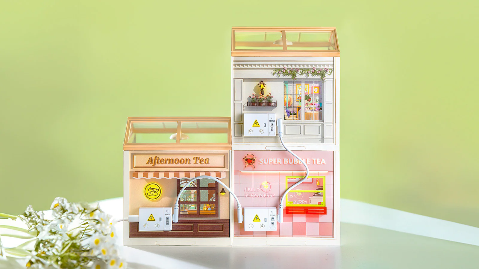 Αυτή η σκηνή αναδεικνύει έναν κήπο με ένα τραπέζι τσαγιού, δίνοντας την ιδέα ότι έχετε κάτι με το οποίο μπορείτε να παίξετε μόλις το συναρμολογήσετε προσθέτοντας μερικές μίνι κούκλες.
