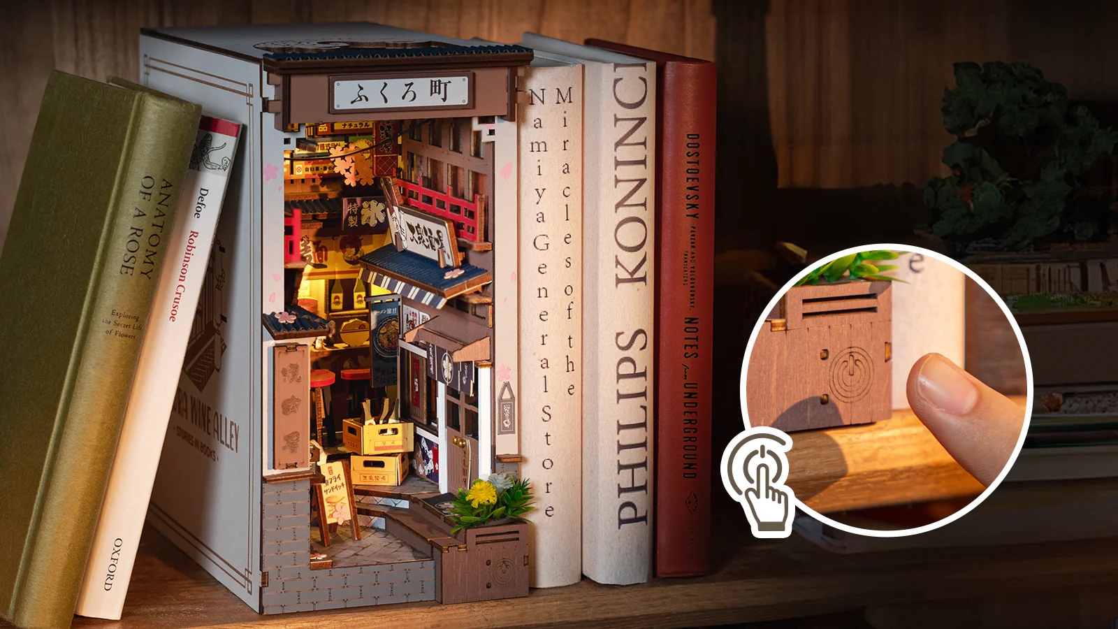 Δημιουργήστε μια πιο σαγηνευτική βιβλιοθήκη με βιβλιοστάτες της Rolife στα ράφια σας. Το Sakura Wine Alley δίνει στη συλλογή βιβλίων σας μια έξτρα πινελιά προσωπικότητας και ψυχαγωγίας!